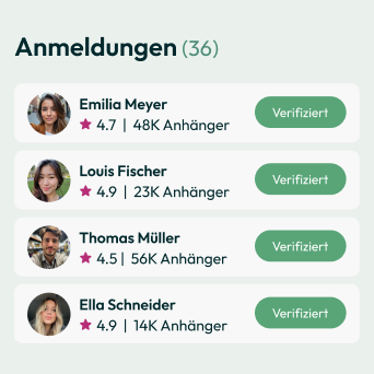 Über 12.000 verifizierte UGC Creator in Deutschland warten in unserer Plattform